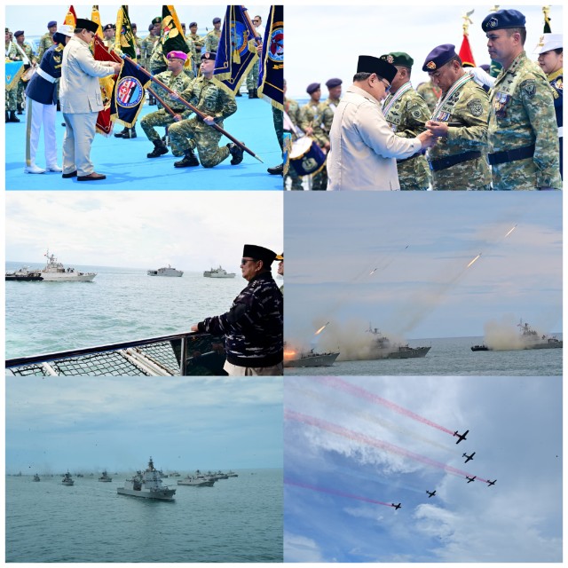 RADAR BLAMBANGAN.COM, | JAKARTA, 3 Oktober 2025,- Menjelang HUT Ke-80 Tentara Nasional Indonesia, puluhan Kapal Perang TNI AL tunjukkan kekuatan maritimnya di hadapan Presiden RI Jenderal TNI (Purn.) Prabowo Subianto dalam kegiatan “Presidential Inspection” saat On Board di Kapal Markas KRI dr. Radjiman Wedyodiningrat-992 yang berlayar di Teluk Jakarta. Kamis (2/10).